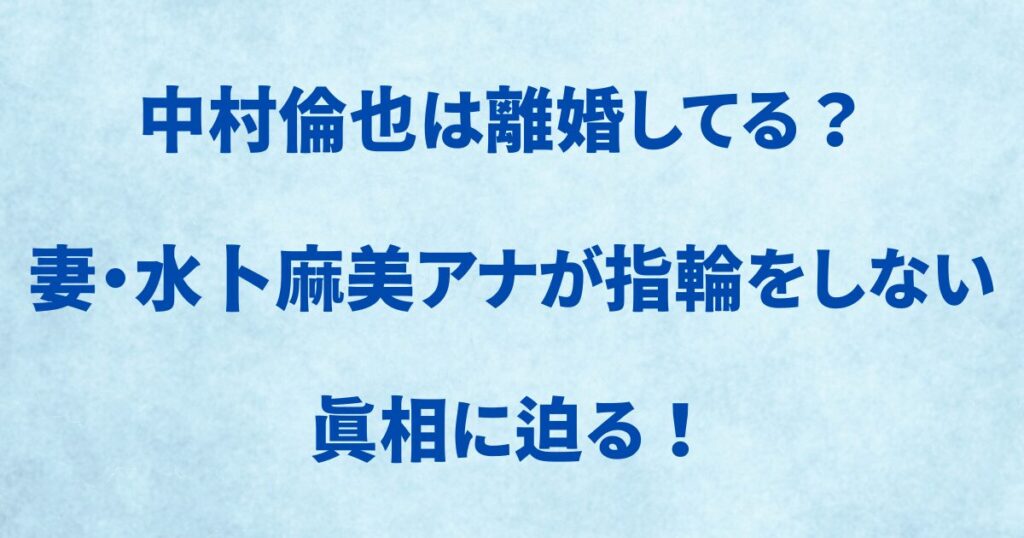 中村倫也は離婚してる? 妻・水卜麻美アナが指輪をしない真相に迫る!
