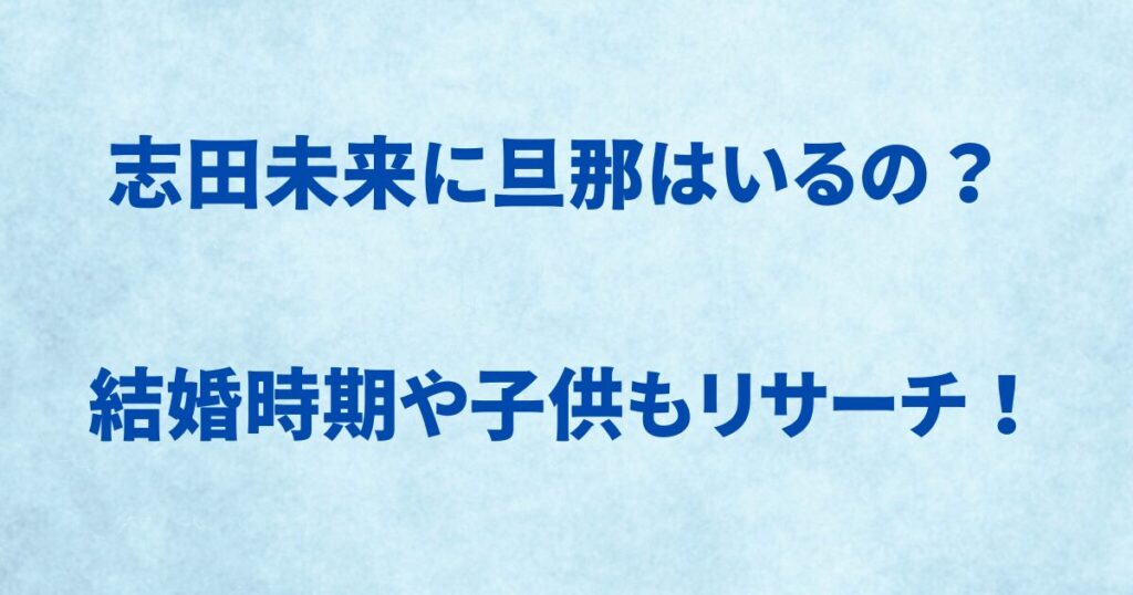 映画やTVのトレンディドラマなどで活躍している女優の志田未来さん。 1993年5月生で現在32歳(2026年3月現在)になる志田未来さんですが、ご結婚されているのでしょうか? 旦那様はどのような方で、また子供さんはいらっしゃるのでしょうか? そこで今回の... -