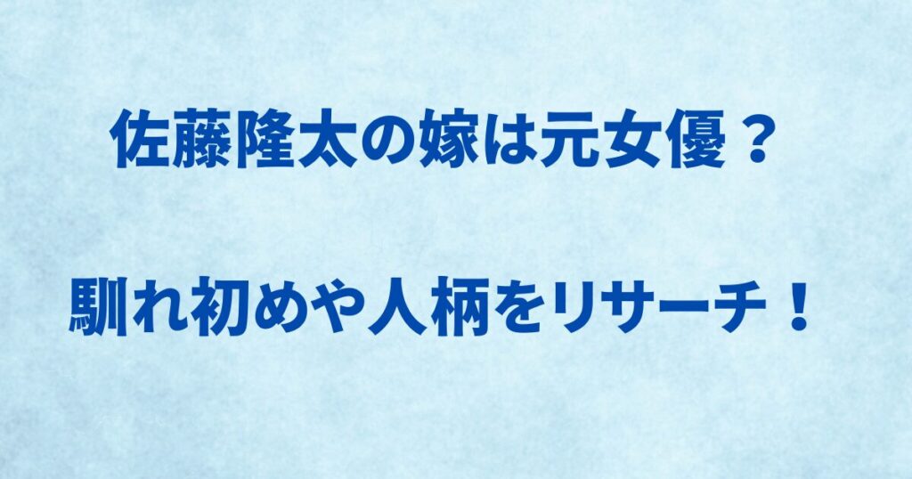 佐藤隆太の嫁は元女優? 馴れ初めや人柄をリサーチ!